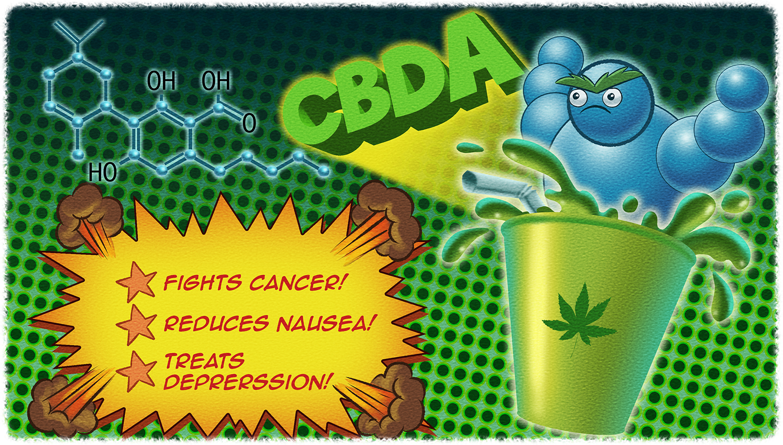 If you have done research on CBD you probably would have come across its anxiety curing traits. In a similar way, its parent acid CBDA is closely related to curing anxiety symptoms and other psychotic disorders. The compound even has a patent created by GW Pharmaceuticals in 2011 allowing it to be explored further as a pharmaceutical drug. The acid, along with other cannabinoids such as CBD, THCV, CBG, and more, are all related to soothing the mind and improving one’s mood.
